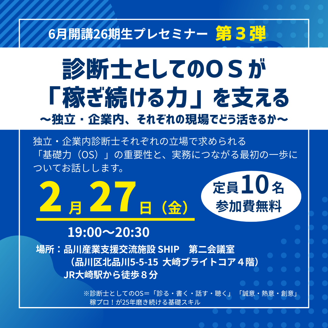 診断士としての「OS(基礎力)」が、なぜ稼ぎ続ける力につながるのかを整理するプレセミナーです。