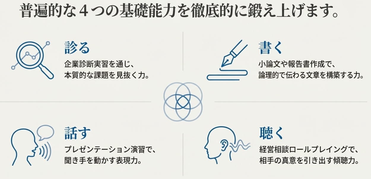 診断士としての「診る・書く・話す・聴く」という基礎スキルは、独立・企業内いずれの立場でも成果を左右する“OS(基本構造)”です。
